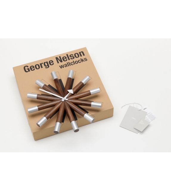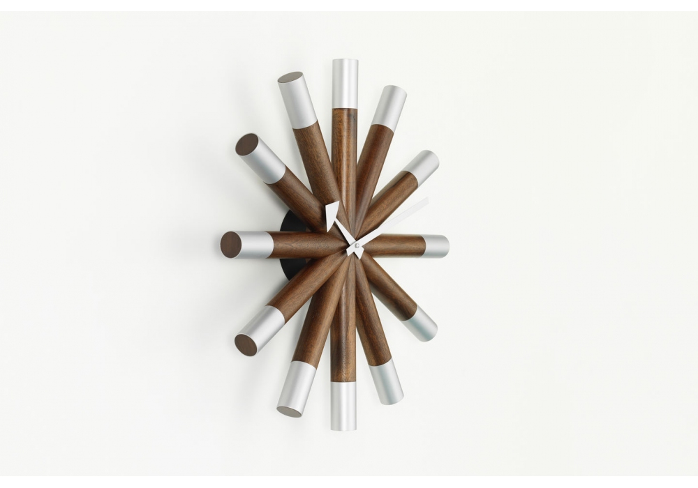 Vitra Wheel Clock: In einer Vielfalt von Materialien und skulpturalen Formen verkörpern George Nelsons Uhren das Lebensgefühl der 50er Jahre. Seine Wanduhren sind auch heute noch eine erfrischende Alternative zu gewöhnlichen Zeitmessern. Das Vitra Design Museum legt eine Reedition der bei Sammlern begehrten Entwürfe in originalgetreuer Form wieder auf. Kollektion Vitra Design Museum.
