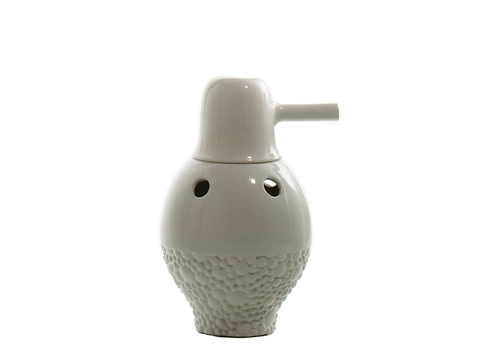 Showtime N°1 von Jaime Hayon für BD Barcelona entworfen, ist eine Vase aus glasierter Keramik, innen und außen in Weiß.