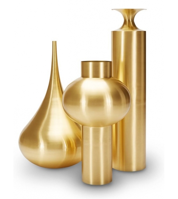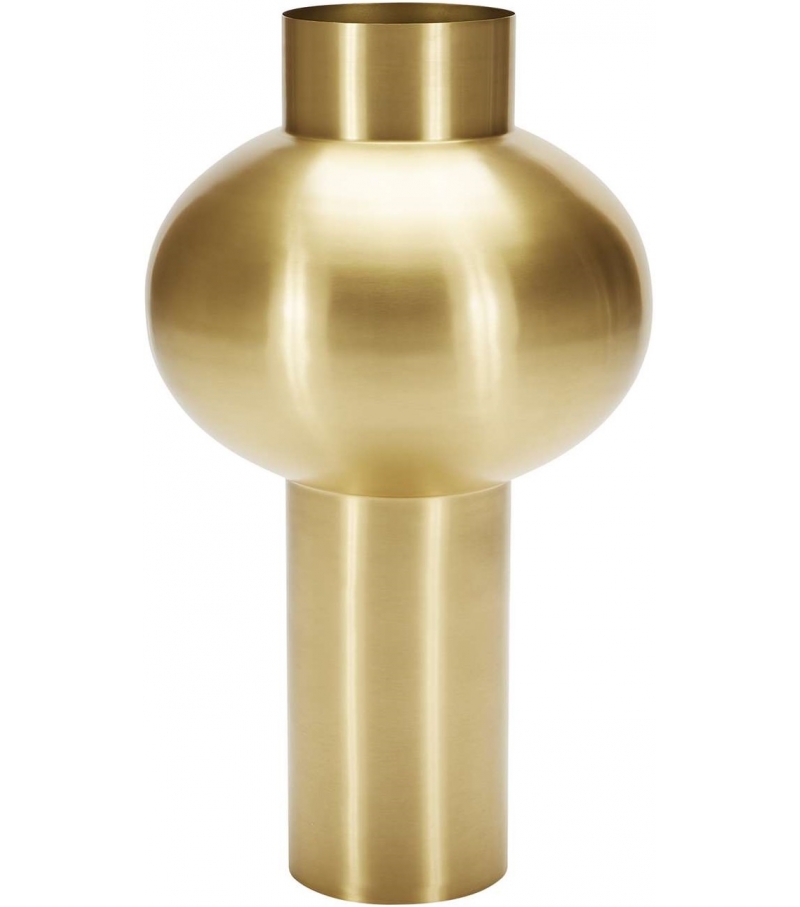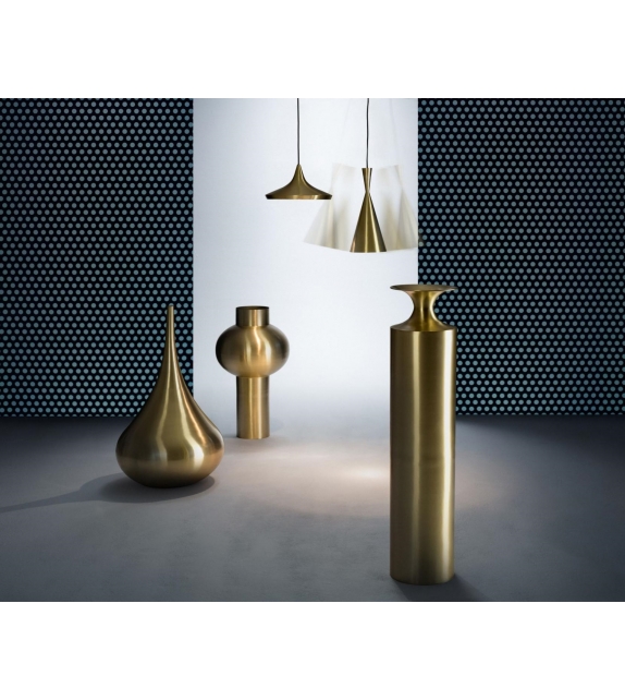 Beat Vessel Top von Tom Dixon ist eine Bodenvase aus Messing in Goldoptik. Die aus reinem Messing gefertigten Beat Vessels werden von den renommierten Handwerkern von Moradabad in Nordindien handgefertigt.