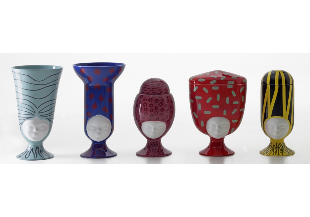 Sisters Madagascar, von Pepa Reverter für Bosa entworfen, ist eine Sammlung von fünf handbemalten Vasen aus glasierter Keramik. Angesichts der handgemachten Verarbeitung, eventuelle Unterschiede in der Dekoration im Vergleich zum Foto nicht als Mangel zu werten.