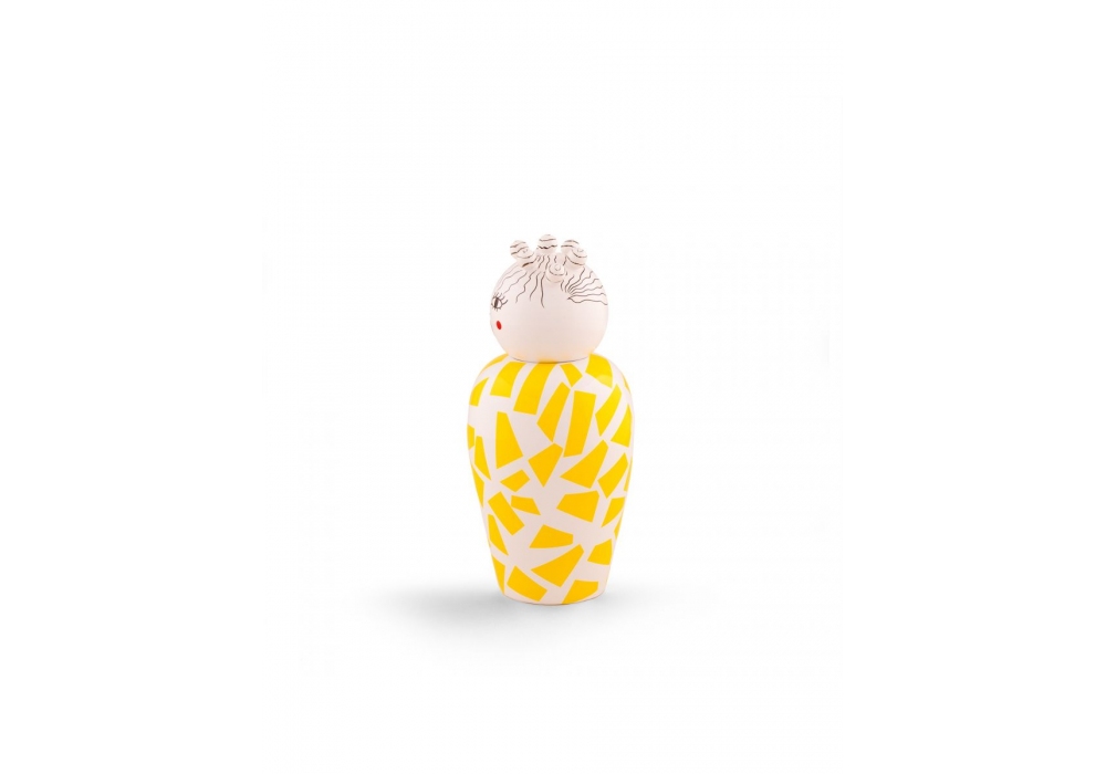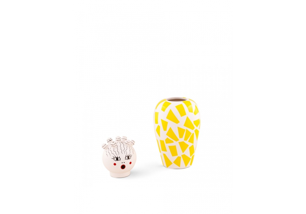 Le Canopie-Rosio von Elena Cutolo für Saletti entworfen ist eine runde Vase mit Deckel aus dekoriertem weißem Porzellan.
