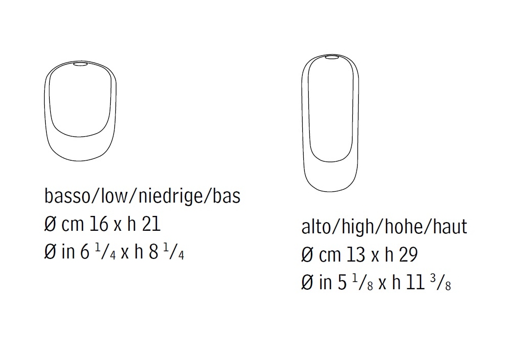 | Abmessungen | Ø 16 x H 21 cm; Ø 13 x H 29 cm |