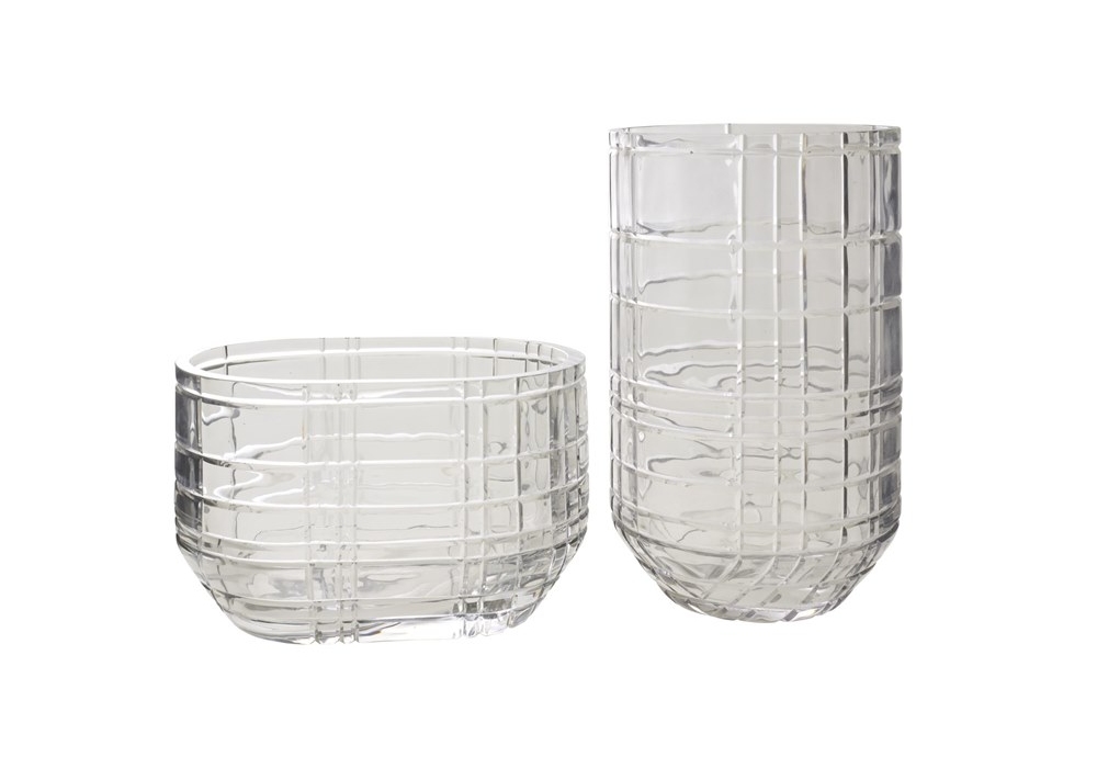 Prisme von Benjamin Graindorge für Ligne Roset entworfen, ist eine mundgeblasene Glasvase mit horizontalen und vertikalen Linien in der Glasoberfläche. Transparentes oder Smoke lackiertes Glas. Auch verfügbar in 2 Modelle.
