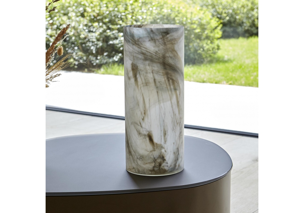 Verone von Ligne Roset entworfen, ist eine Vase aus mundgeblasenem Glas, die mit ihrer mattierten Oberfläche den Eindruck erweckt, aus Marmor gehauen zu sein. Das Glas wird aus recycelten Glaswaren hergestellt. Verfügbar in 2 Versionen: grau oder grün.