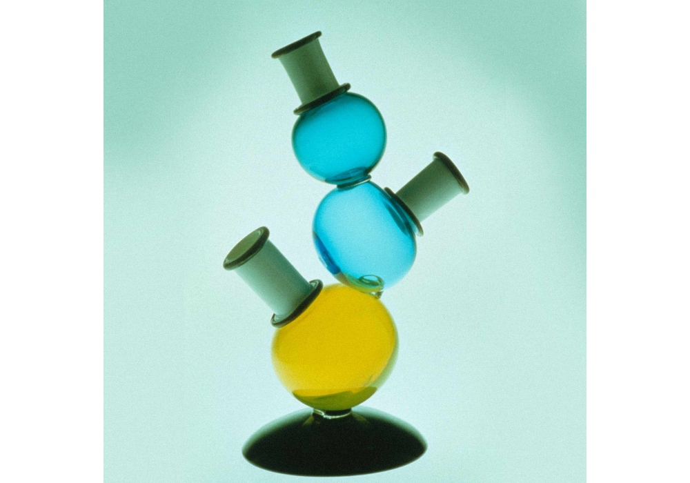 Antares von Michele De Lucchi für Memphis Milano entworfen, ist eine vase aus mundgeblasenem glas.