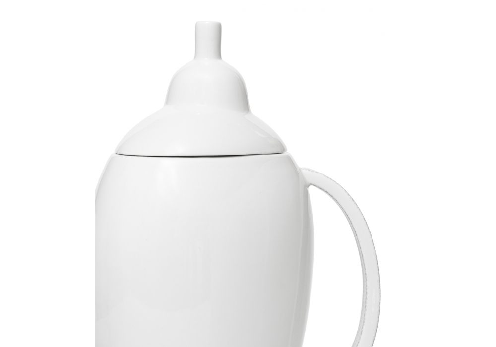 Garda von Matteo Thun für Memphis Milano entworfen, ist eine Vase aus weißem Porzellan mit Verzierungen und drei Griffen.