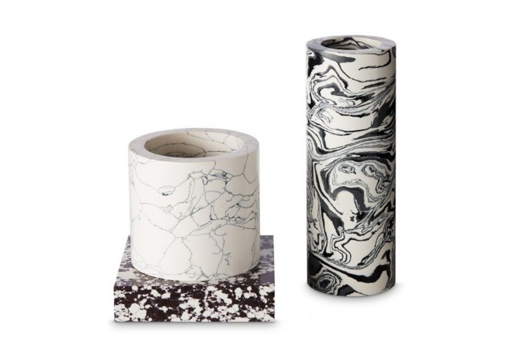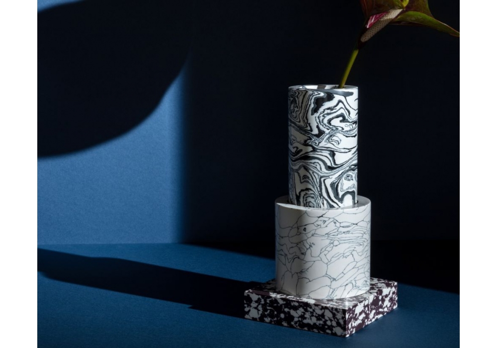 Swirl Small von Tom Dixon entworfen, ist eine Vase, die aus drei modularen Marmorblöcken besteht.