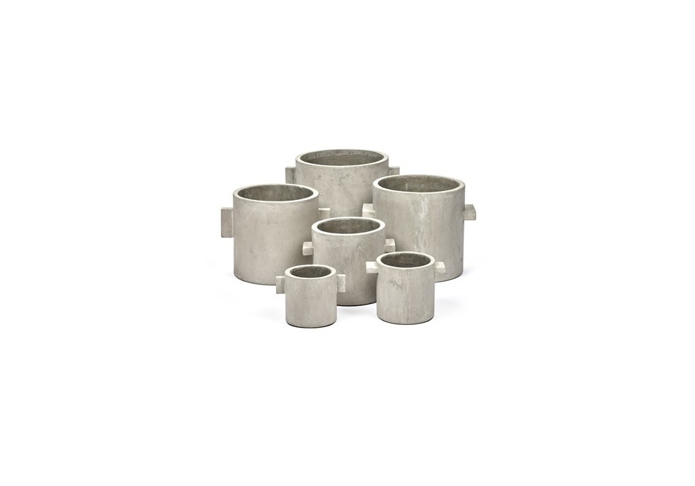 Concrete von Marie Michielssen für Serax entworfen, ist eine Vase, sie besteht vollständig aus zylindrischem Beton, in einem einzigen grauen Beton-Finish. Die Griffe befinden sich je nach gewähltem Modell in vertikaler oder horizontaler Position. Beton ist in vier verschiedenen Größen erhältlich.