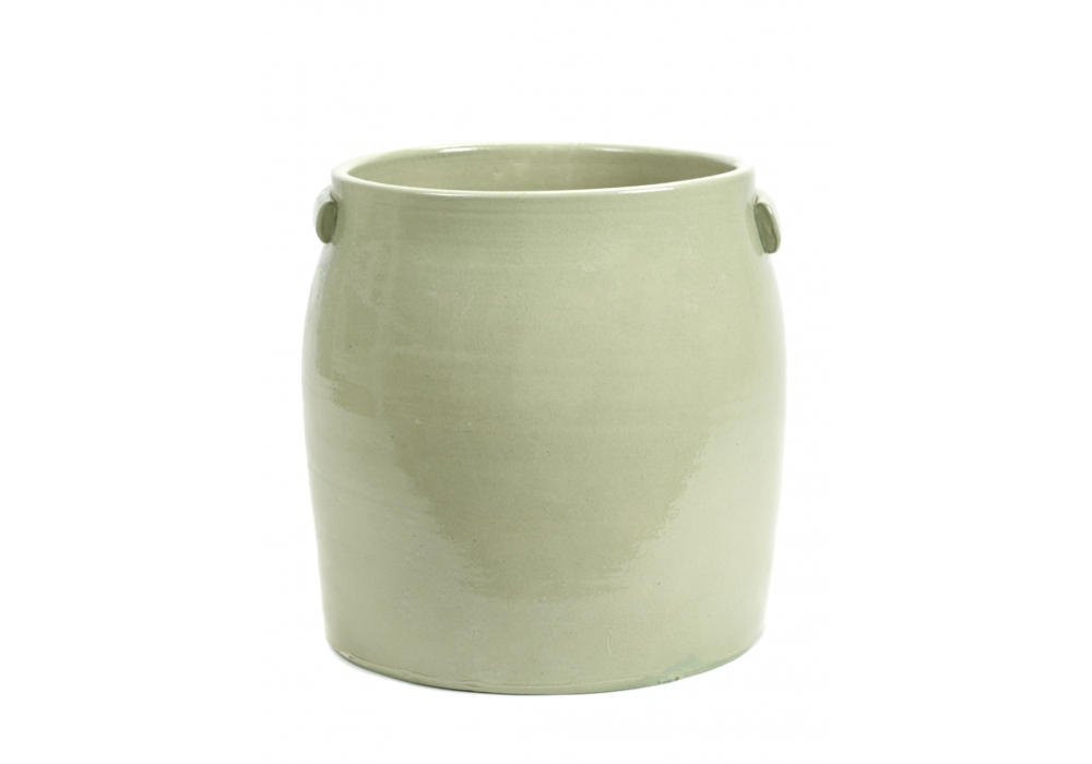 Jars von Serax hergestellt und signiert ist eine Vase, die vollständig aus zylindrischem Steinzeug besteht, die in den Farben bemalt ist; gelb, orange, grau, grün oder blau. Jars ist in vier verschiedenen Größen erhältlich.