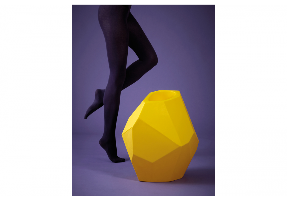 Secret von Rosaria Rattin für Slide entworfen, ist eine Vase aus Polyethylen, deren Design auf der Unregelmäßigkeit der Form basiert. Erhältlich in der hellweißen Version und in verschiedenen Ausführungen