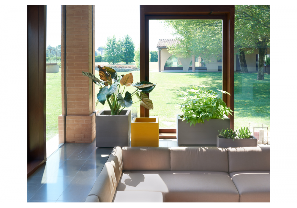 Quadra von Giò Colonna Romano für Slide entworfen, ist eine facettierte Vase mit horizontalen Streifen. Dank seiner Form und seiner verschiedenen Abmessungen passt er sich jeder Umgebung an, ob drinnen oder draußen. Erhältlich in verschiedenen Ausführungen und Größen.