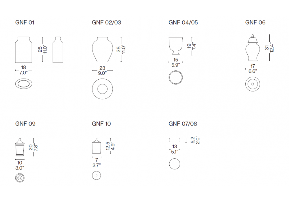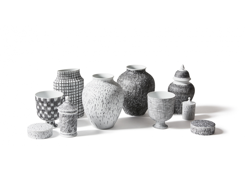 Post Scriptum von Formafantasma für Ginori 1735 x Cassina entworfen, ist eine Kollektion von Vasen aus weißem Porzellan, die von Hand dekoriert wurden. Verfügbar in mehreren Modellen.