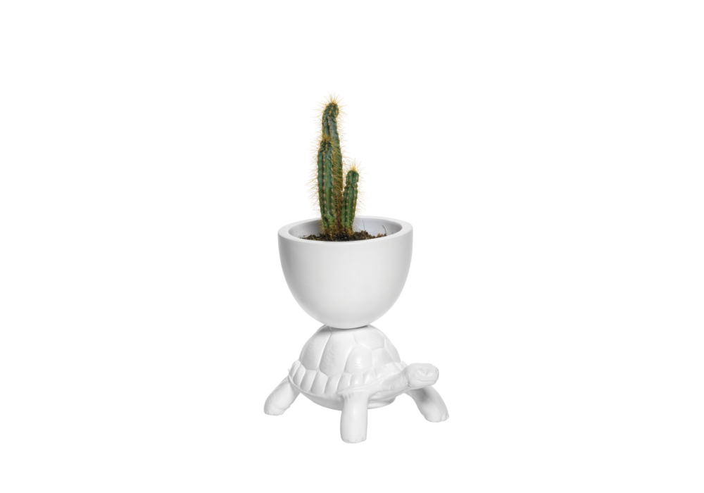 Turtle Carry XS von Marcantonio für Qeeboo entworfen, ist eine Vase komplett aus weißem Polyethylen.