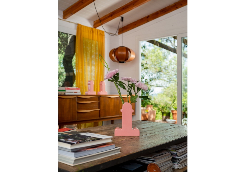 Shiva von Ettore Sottsass Jr. für BD Barcelona entworfen, ist eine Vase aus rosa glasierter Keramik.