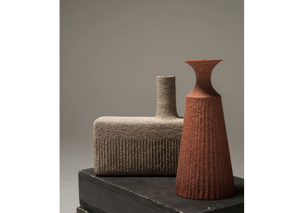 Friedl Lucie and Marlene, entworfen von Studiopepe für Tacchini, sind drei Vasen in verschiedenen Größen und Ausführungen. Hergestellt mit alten Herstellungstechniken und mit einem einfachen und materiellen Design.