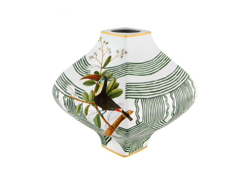 Tucano von Vista Alegre mit Ecoarts entworfen, ist eine Vase aus Porzellan mit von Flora und Fauna inspirierten Dekorationen.
