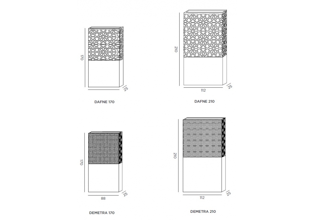 | Abmessungen | • 88 x 25 x H 170 cm; • 112 x 25 x H 210 cm |