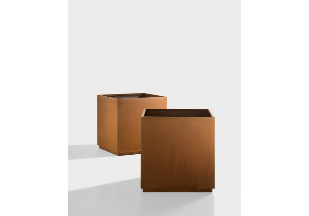 Cube von R&D De Castelli für DeCastelli entworfen, ist ein Blumentopf aus Metall, komplett mit Innentopf aus Kunststoff. Erhältlich in verschiedenen Ausführungen und Größen.