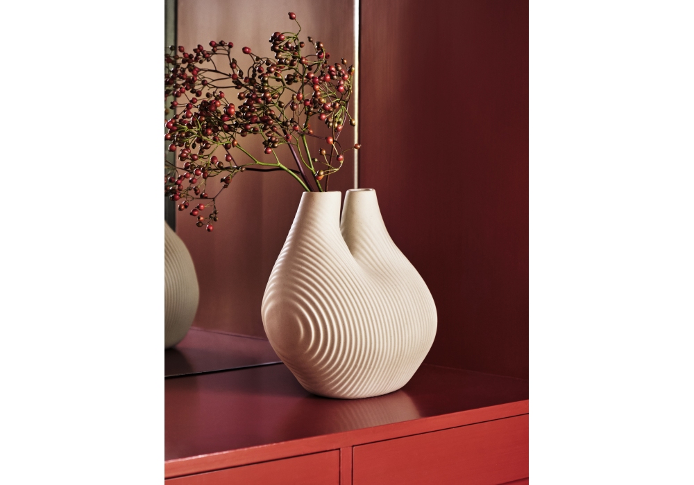 W&S von Wang & Söderström für Hay entworfen, ist eine Vase aus Porzellan oder Steinzeug in der olivgrünen Version. Die 3D-Modelle werden im Studio der Designer entwickelt, dann in einer Keramikfabrik 3D-gedruckt und in Porzellan modelliert. Verfügbar in mehreren Modellen.