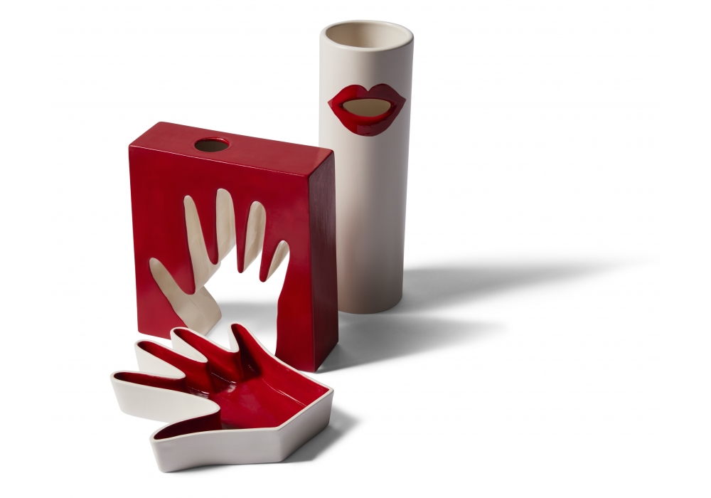 Impronta von Ico Parisi für Cassina entworfen, ist eine Kollektion von Vasen und Taschenleeren aus handdekorierter glasierter Keramik.