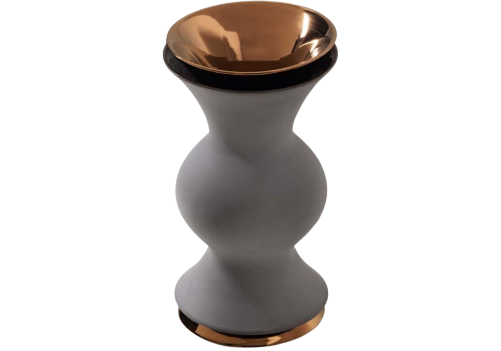 Pomina von Marco Zanuso für Bosa entworfen, ist eine Keramikvase, die in verschiedenen Ausführungen erhältlich ist. Die Innenseite kann im gleichen Finish wie die Außenseite oder mit einem Edelmetall veredelt werden.