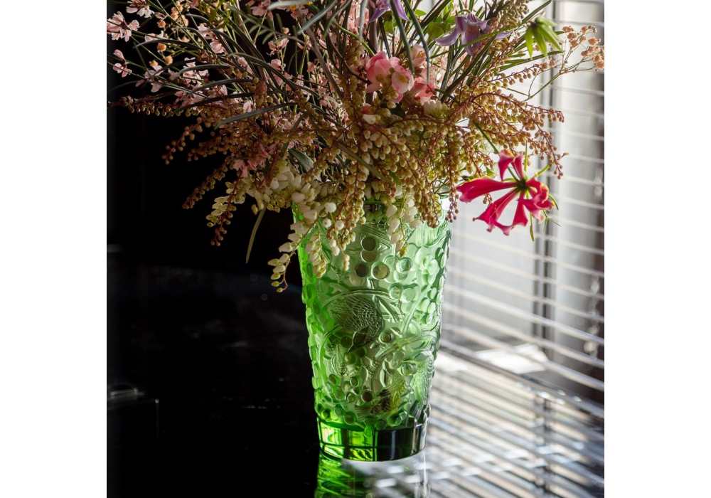 Merles et Raisins von René Lalique für Lalique entworfen, ist eine handgefertigte Vase aus Kristall. Verfügbar in mehreren Ausführungen.