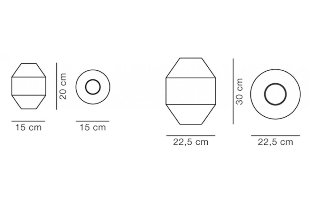 | Abmessungen | - Ø 15 x H 20 cm; - Ø 22.5 x H 30 cm. |