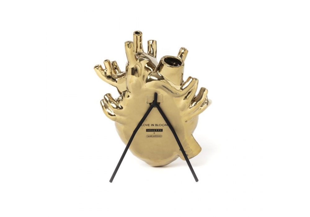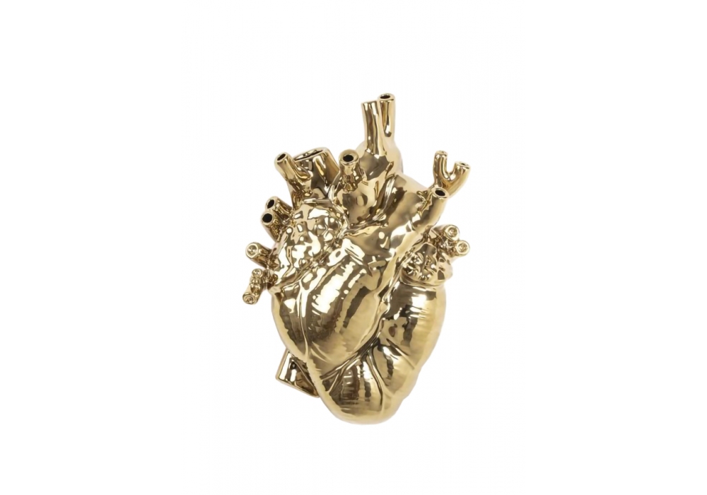 Love in Bloom Gold entworfen von Marcantonio für Seletti ist eine Vase aus sehr feinem goldfarbenem Porzellan die die Anatomie eines menschlichen Herzens darstellt.