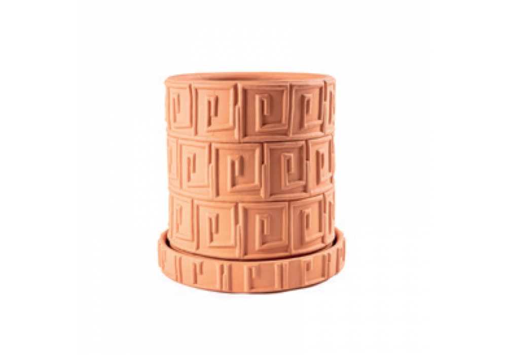 Magna Graecia von Antonio Aricò für Seletti entworfen ist eine zylindrische Terrakottavase mit einer Oberfläche, die mit mehreren geometrischen Figuren bereichert ist. Magna Graecia ist in verschiedenen Modellen erhältlich.