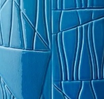 Guadalupe Vase A von Bethan Laura Wood für Bitossi Ceramiche entworfen, ist eine Kollektion handgefertigter Vasen aus weißem Ton in leuchtendem Kristallgrün, Himmelblau oder sogar Craquelé-Blau.