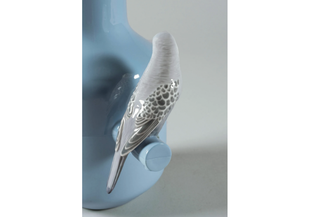 Parrot Parade von Alfredo Llorens für Lladró, ist eine glänzende und matte Vase aus Porzellan, die in verschiedenen Farben erhältlich ist und drei Papageien auf drei Zweigen zeigt.