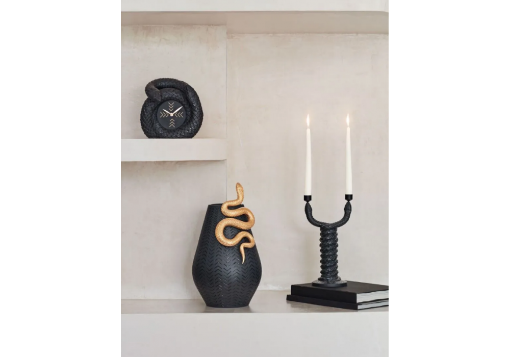Snakes von Raul Rubio für Lladró ist eine Vase aus Porzellan mit mattschwarzem Finish und einer Dekoration mit einer goldfarbenen Schlange.