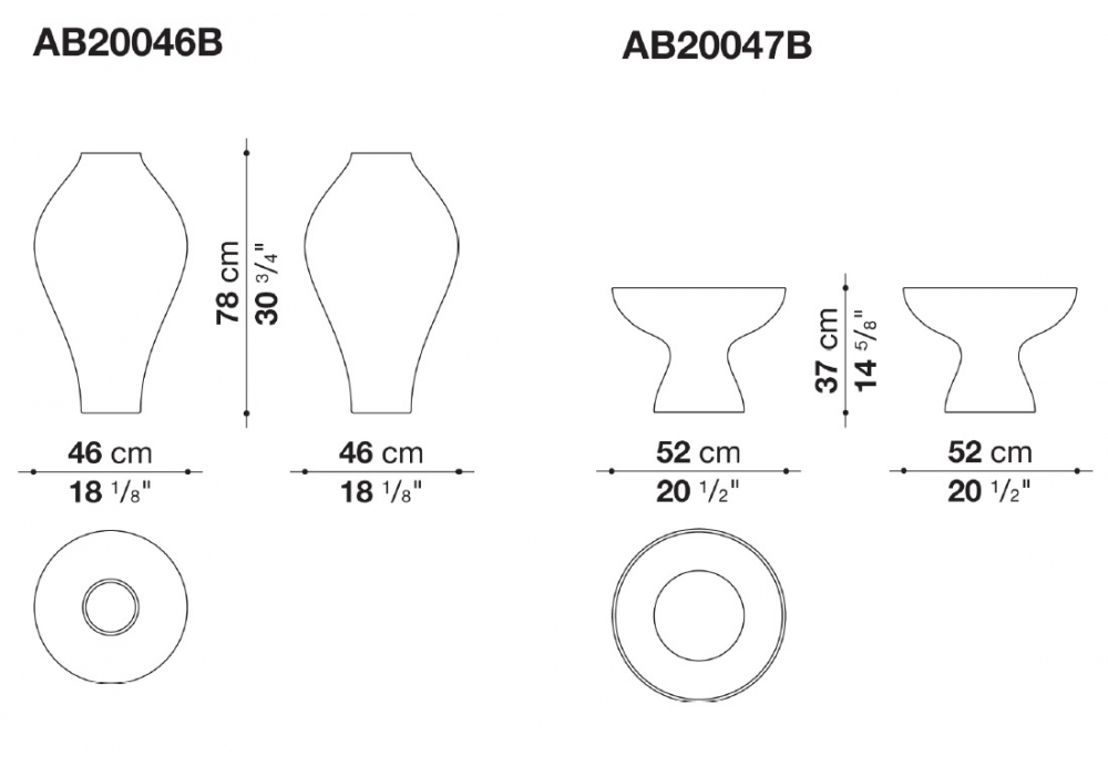 | Abmessungen | Ø 46 cm x H 78 cm; Ø 52 x H 37 cm |
