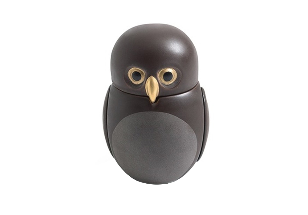 Owls Civetta Nana, von Manolo Bossi für Bosa entworfen, ist eine Skulptur in Glasierte keramik mit Edelmetallen, dass darstellt eine Kreatur mit großen frontalen Augen wie Menschen. Es ist Teil der The Owls Kollektion, die auch andere 2 magische und angestammte Kreaturen, Symbole der Weisheit, Intelligenz und Schönheit umfasst.
