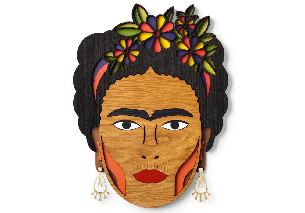 Miss Frida von Tzachi Nevo für Umasqu entworfen, ist eine handgefertigte Wanddekoration aus Holz, die das Gesicht der berühmten Künstlerin Frida Kahlo reproduziert.