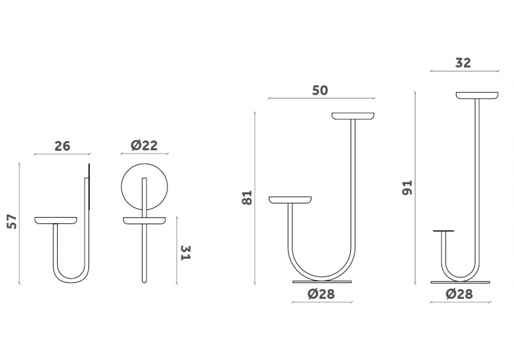 | Abmessungen | • 28 x 50 x H 81 cm; • 28 x 32 x H 91 cm; • 22 x 26 x H 57 cm; • 85 x 28 x H 150 cm |