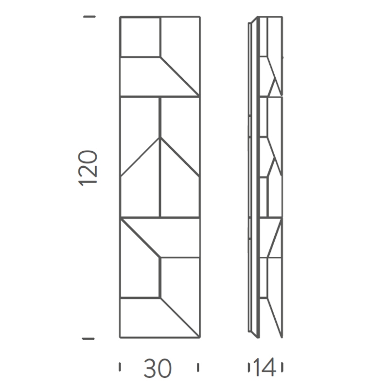 | Abmessungen | 15 x 14 x H 45 cm (petit); 30 x 14 x H 45 cm (moyen); 30 x 14 x H 120cm (long); 90 x 14 x H 120 cm (grand). |