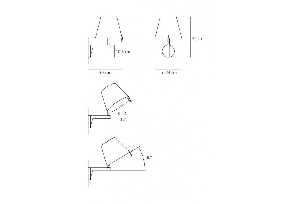 Melampo von Adrien Gardère für Artemide entworfen ist eine Wandleuchte mit tragender Struktur aus Zamak-Legierung und lackiertem Aluminium. Der Lampenschirm besteht aus Satin mit Technopolymer-Träger und schirmt eine dimmbare LED-Lichtquelle ab. Melampo ist in zwei verschiedenen Versionen mit oder ohne Schalter erhältlich.