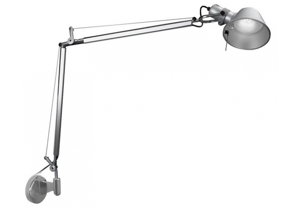 Tolomeo Mini entworfen von Michele De Lucchi und Giancarlo Fassina für Artemide ist eine Wandleuchte, die vollständig aus lackiertem oder natürlichem Aluminium besteht. Die Struktur verfügt über bewegliche Arme mit Gelenken und Stützen aus poliertem Aluminium. Der Diffusor ist verstellbar, kreisförmig und aus Aluminium gefertigt und beherbergt eine dimmbare LED-Lichtquelle. Tolomeo Mini ist in verschiedenen Ausführungen und Farbtönen der Lichtquelle erhältlich.