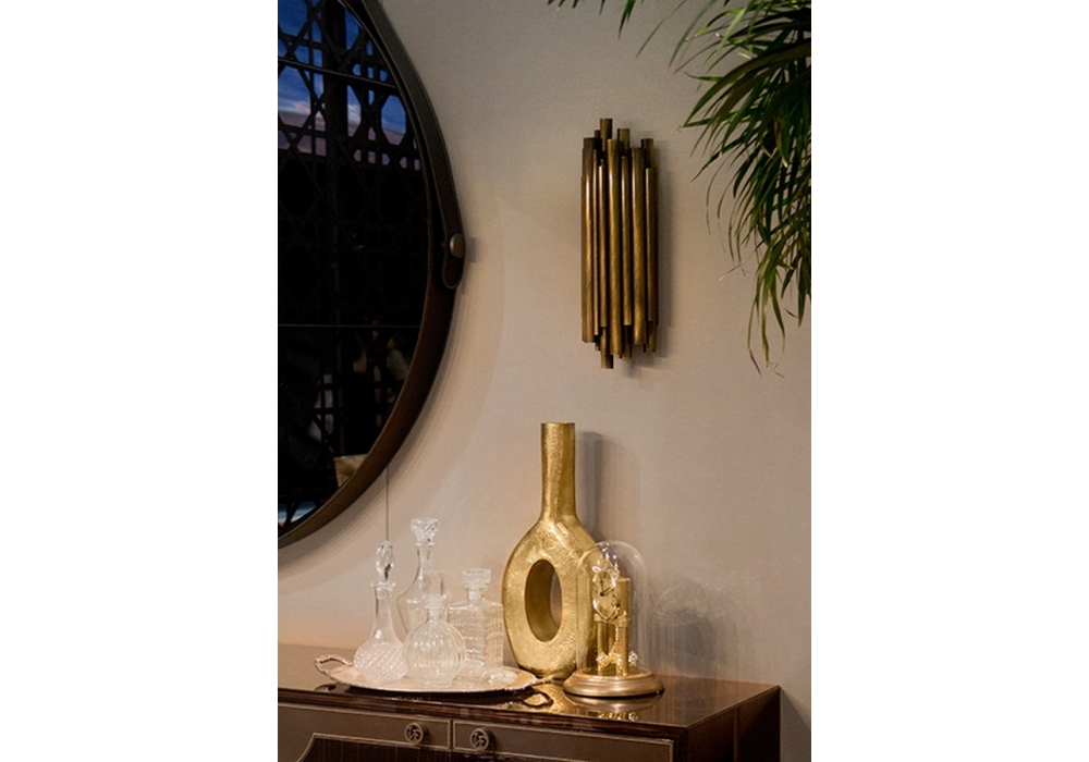 Brubeck, entworfen von DelightFULL, ist eine Wandleuchte, der Körper ist handgefertigt aus Messing und von der Pfeifenorgel inspiriert. Für den letzten Schliff verfügt es über ein vergoldetes Finish im Art-Deco-Stil.