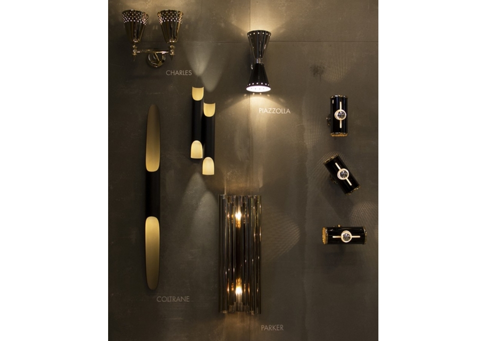 Chuck, entworfen von DelightFULL, ist eine handgefertigte Lampe aus Messing mit standardmäßig vergoldeter Oberfläche, während der eigentliche Lampenschirm aus Aluminium besteht und eine glänzend schwarze Lackierung aufweist.