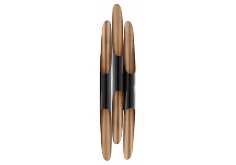 Coltrane 3, entworfen von DelightFULL, ist eine handgefertigte Lampe aus Stahl mit Oberflächen in mattschwarzer und goldener Pulverfarbe.