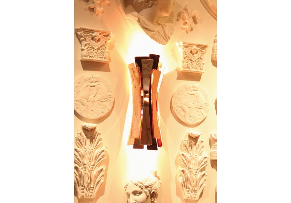 Etta von DelightFULL entworfen, ist eine Wandleuchte mit handgefertigter Messingstruktur, sie besteht aus 12 Blättern, die von Hand geformt und zusammengesetzt werden.
