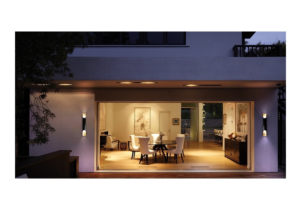 Galliano 1 von DelightFULL entworfen, ist eine Wandleuchte aus Eisen mit einer mattschwarzen Außenseite und einer goldenen Pulverlackierung im Inneren.