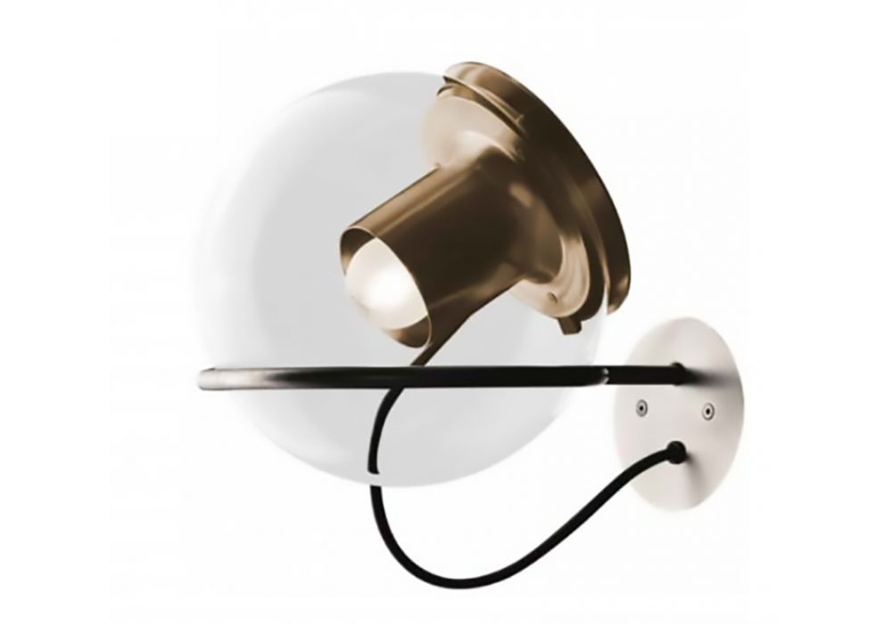 Die von Joe Colombo für Oluce entworfene Globe ist eine Wandleuchte mit tragender Struktur und Reflektor aus vernickeltem oder patiniertem Bronzemetall. Der Diffusor ist kugelförmig aus transparentem mundgeblasenem Glas und schirmt eine Lichtquelle. Der Globus ist in verschiedenen Ausführungen erhältlich.