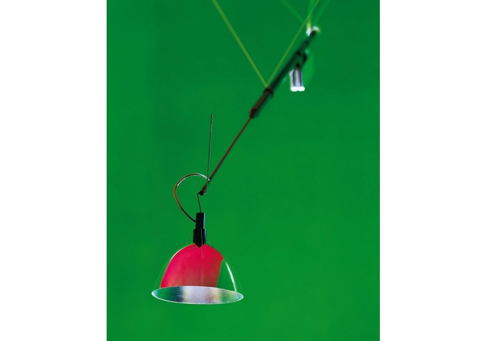 Max. Mover ist eine Wandleuchte von Ingo Maurer entwickelt. Aluminium, Fiberglas. Nomen est omen: Das Teleskop ist von 110 auf 210 cm ausziehbar. Durch die Aufhängung an Nylonseilen ist Max. Mover in der Höhe zu verstellen und um 180º drehbar. An seinem Griff kann der Reflektor in zwei Richtungen stufenlos eingerichtet werden.