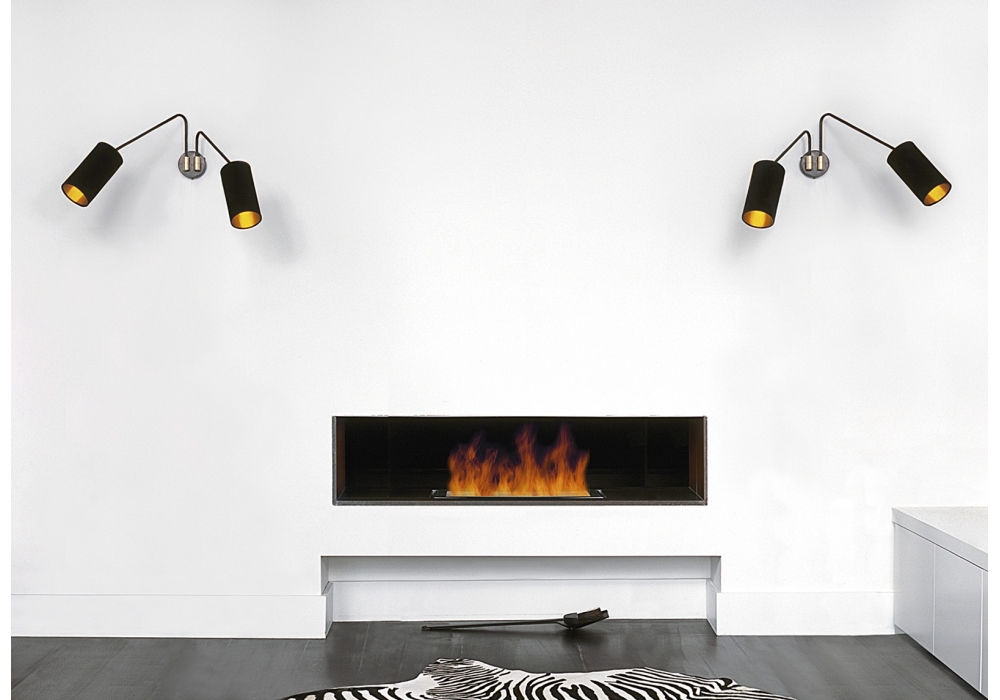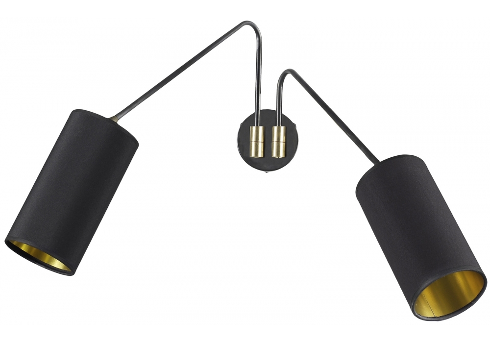 Array Twin Cotton von CTO Lighting entworfen, ist eine Wandleuchte aus Bronze mit Details aus satiniertem Messing und Lampenschirmen aus schwarzer Baumwolle mit goldenem Futter.
