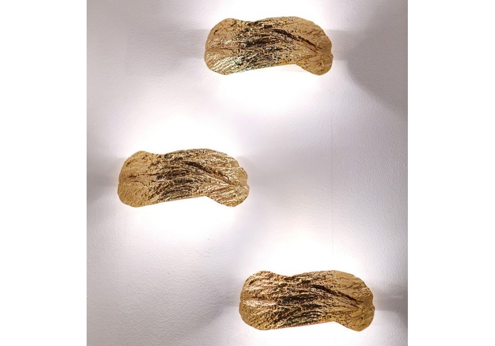 Wabi, von Nicolas Terzani für Terzani entworfen, ist eine Wandleuchte, die vollständig aus plattiertem Metall mit unregelmäßiger Oberfläche strukturiert ist. Die gewählte Lichtquelle ist vom dimmbaren Halogentyp. Wabi ist in verschiedenen Ausführungen erhältlich.