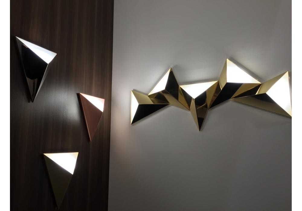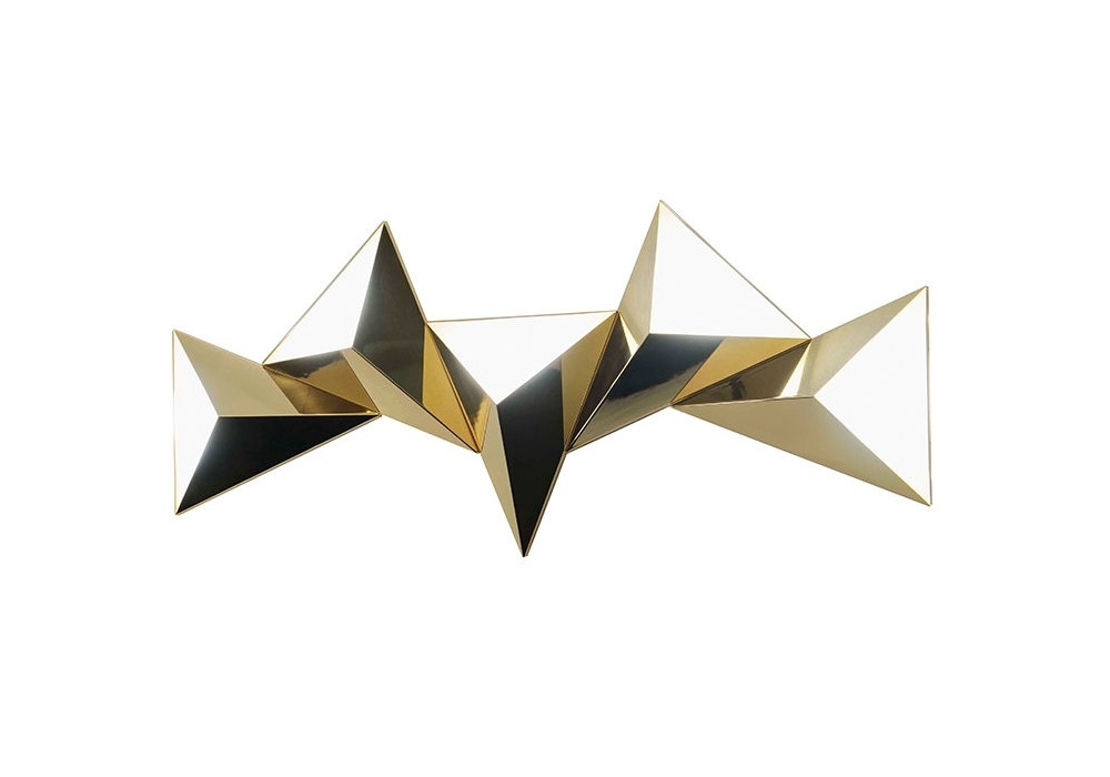Tetra von Émilie Cathelineau für CVL Luminaires entworfen, ist eine Wandleuchte, die in verschiedenen Ausführungen erhältlich ist. Tetra besteht aus Messingtetraedern, die positioniert und miteinander verbunden werden können, um unendliche geometrische Figuren zu schaffen. Die folgenden Modelle sind nur Beispiele möglicher Kombinationen und die Zusammenstellung der Teile erfolgt nach Ermessen des Kunden.