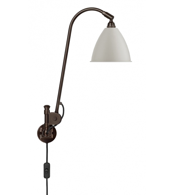 Bestlite BL6, von Robert Dudley Best für Gubi entworfen, ist eine Wandleuchte mit Struktur aus Chrom oder Messing und Schirm aus pulverbeschichtetem Metall. Die Lampe kann um 90 Grad von horizontal nach vertikal geneigt werden. Der Schirm kann auch um 360 Grad gedreht werden.